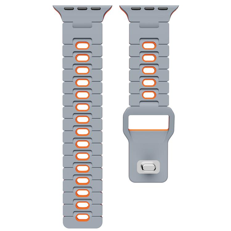 Correa de silicona bicolor para Apple Watch de 46 mm, 49 mm, 45 mm y 44 mm (gris y naranja)