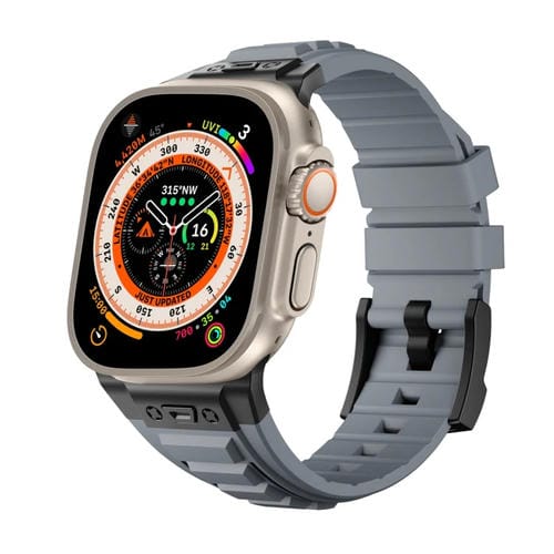Correa de Silicona con Conector de Metal para Apple Watch Ultra 49mm (Hebilla Gris y Negra)