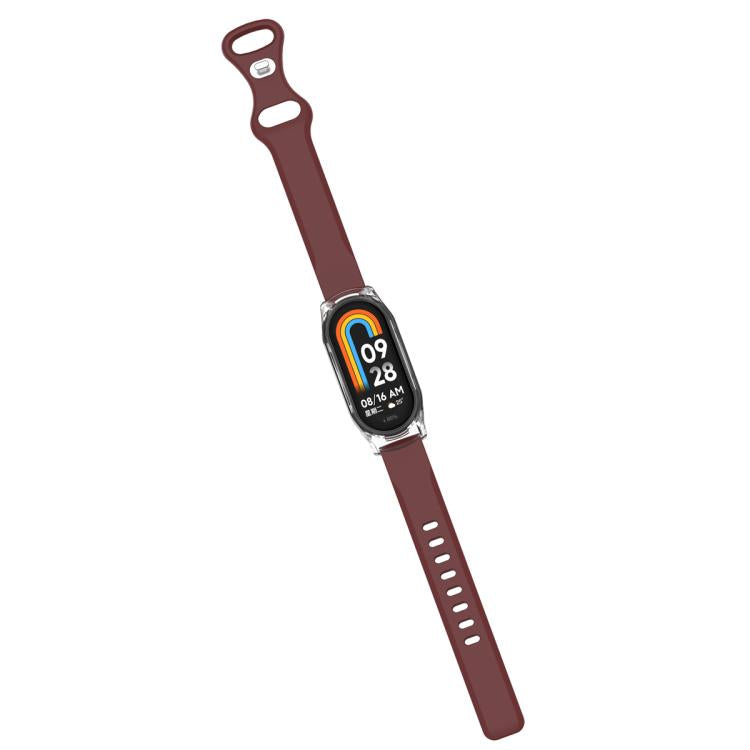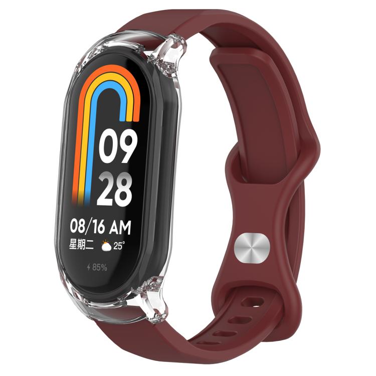 Correa de silicona con hebilla de mariposa para Xiaomi Smart Band 9/9 NFC con funda transparente (rojo vino)