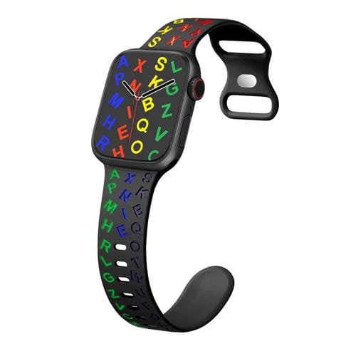 Correa de Silicona con Hebilla de Mariposa y Letras En Inglés para Apple Watch Se 2022 de 40mm (Color Negro)