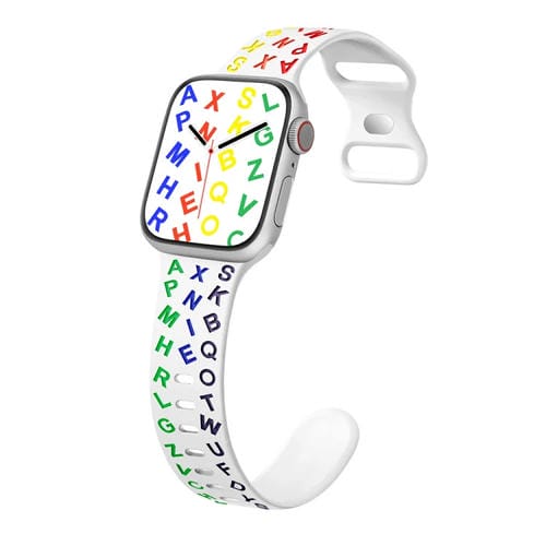 Correa de Silicona con Hebilla de Mariposa y Letras En Inglés para Apple Watch Se 2023 de 44mm (Color Blanco)