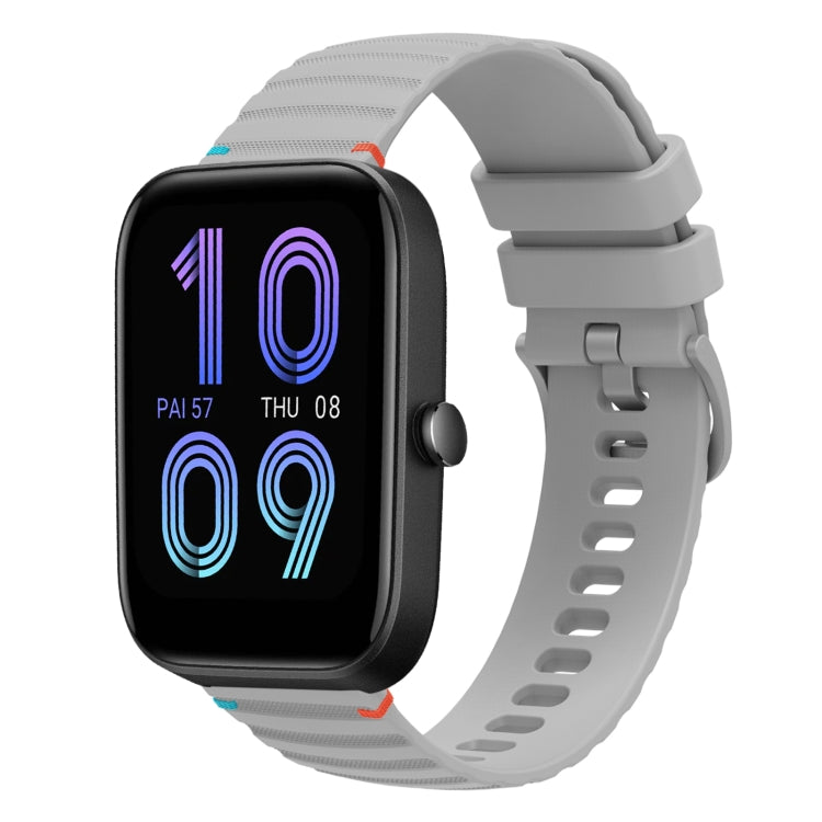 Correa de Silicona para Reloj Amazfit Bip 3 Pro 20mm con Puntadas Onduladas y Puntos (Gris)