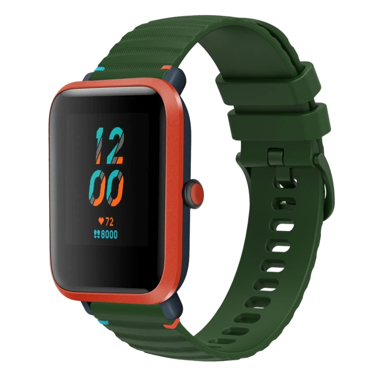 Correa de Silicona para Reloj Amazfit Bip Lite 20mm con Puntadas Onduladas y Puntos (Verde Militar)