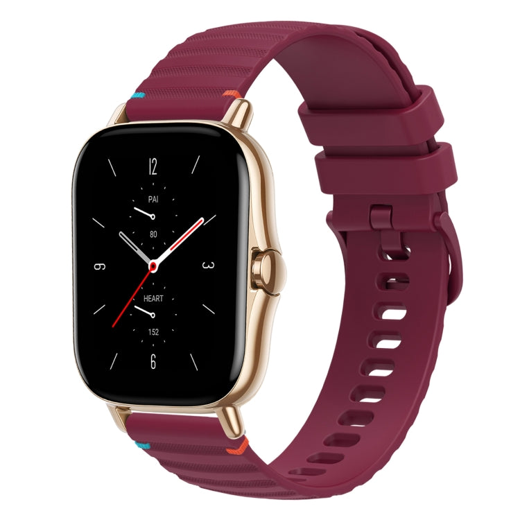 Correa de Silicona Amazfit GTS 2 20mm con Puntadas Onduladas y Puntos (Rojo Vino)
