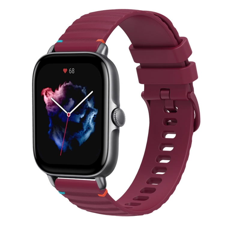 Correa de Silicona para Reloj Amazfit GTS 3 20mm con Puntadas Onduladas y Puntos (Rojo Vino)