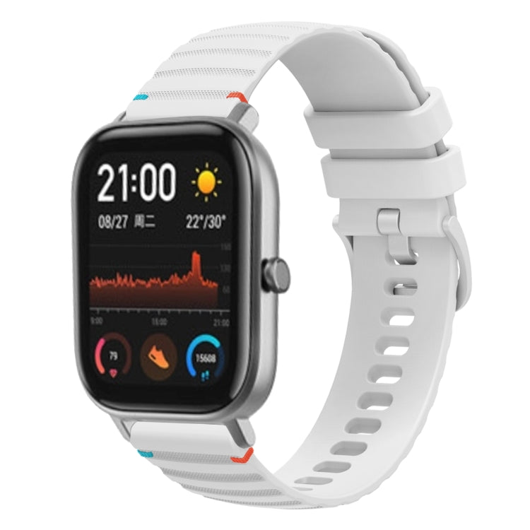 Correa de Silicona para Reloj Amazfit GTS 20mm con Puntadas Onduladas y Puntos (Blanca)