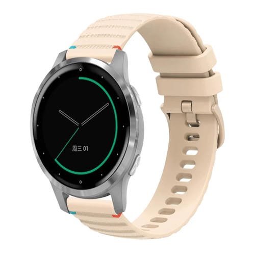 Correa de Silicona Garmin Active S 18mm con Puntadas Onduladas y Puntos (Crema)