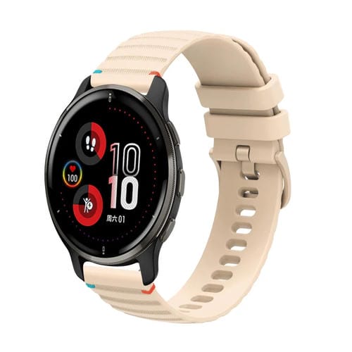 Correa de Silicona Garmin Venu 2 Plus 20mm con Puntadas Onduladas y Puntos (Crema)