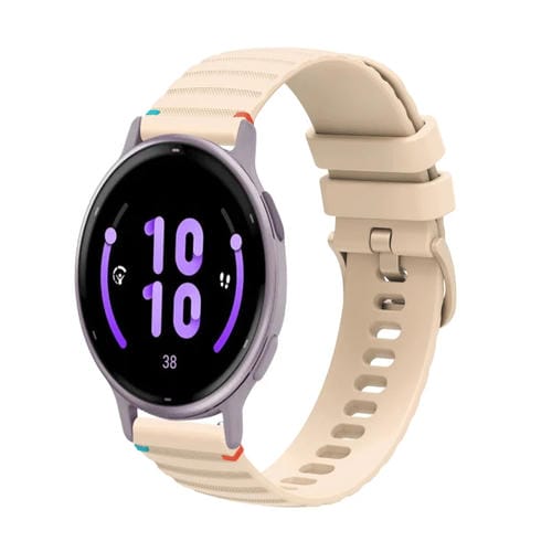 Correa de Silicona Garmin Vivoactive 5 20mm con Puntadas Onduladas y Puntos (Crema)