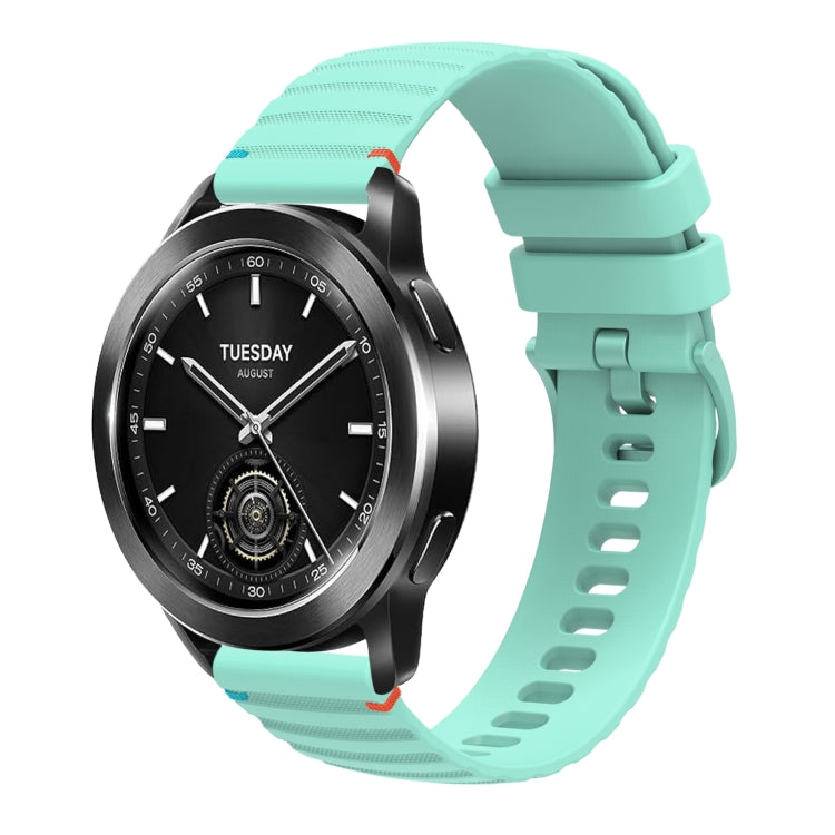 Correa de silicona con puntadas onduladas y puntos para Xiaomi Watch S3 de 22 mm (verde azulado)