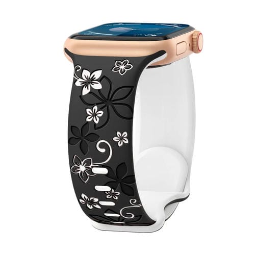 Correa de Silicona Bauhinia para Apple Watch Se 44mm con Relieve (Negra y Blanca)