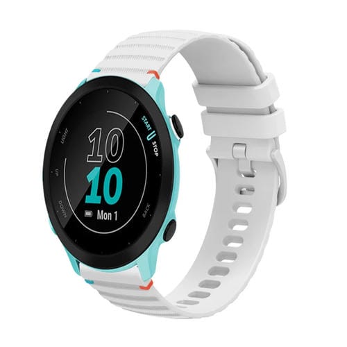 Correa de Silicona 20mm para Reloj Garmin Forerunner 55 con Puntadas Onduladas y Puntos (Blanca)
