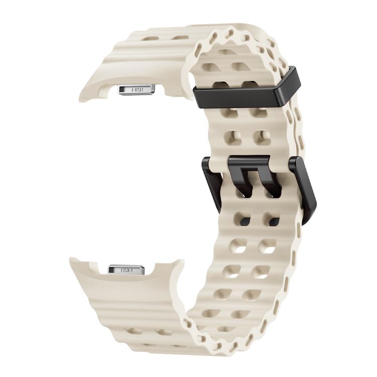 Correa de silicona de color sólido con hebilla de liberación rápida para Samsung Galaxy Watch8/Watch8, estilo clásico oceánico (blanco cremoso)