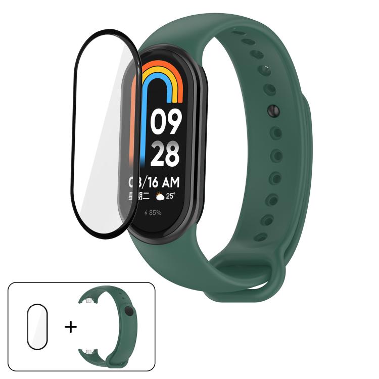 Correa de silicona de color sólido con película curva 3D para Xiaomi Smart Band 9/9 NFC (verde oscuro)