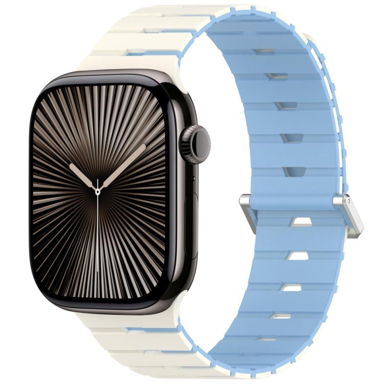 Correa de silicona magnética bicolor estilo melódica para Apple Watch de 42 mm / 41 mm / 40 mm / 38 mm (blanco antiguo, azul niebla).