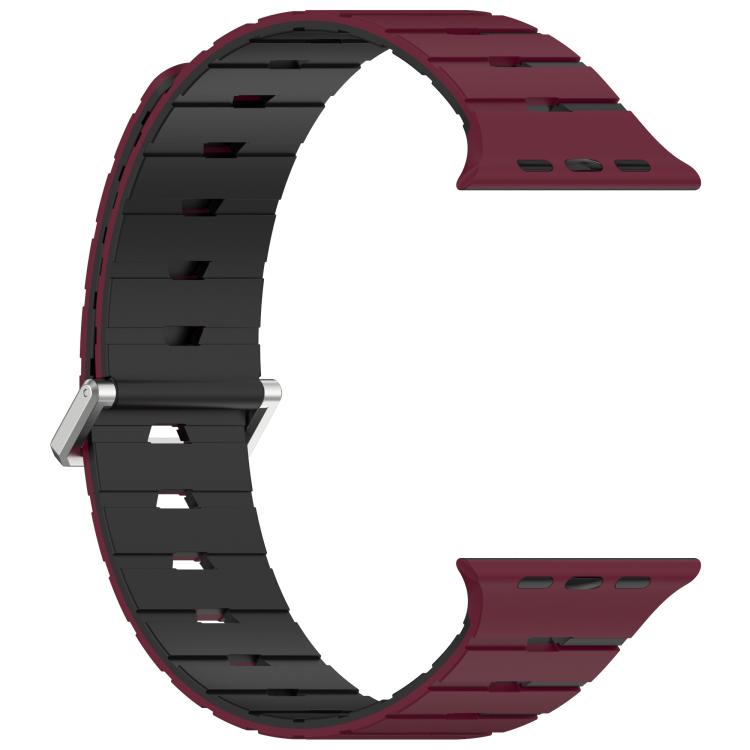Correa de silicona magnética bicolor estilo melódica para Apple Watch de 42 mm / 41 mm / 40 mm / 38 mm (rojo vino y negro).
