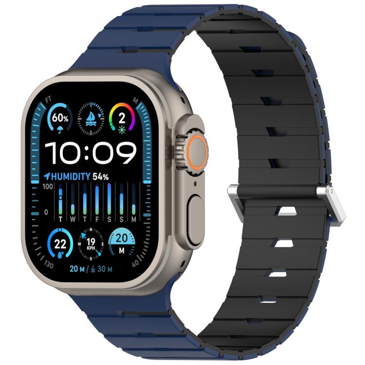 Correa de silicona magnética bicolor estilo melódica para Apple Watch de 46 mm / 49 mm / 45 mm / 44 mm (azul marino oscuro y negro).