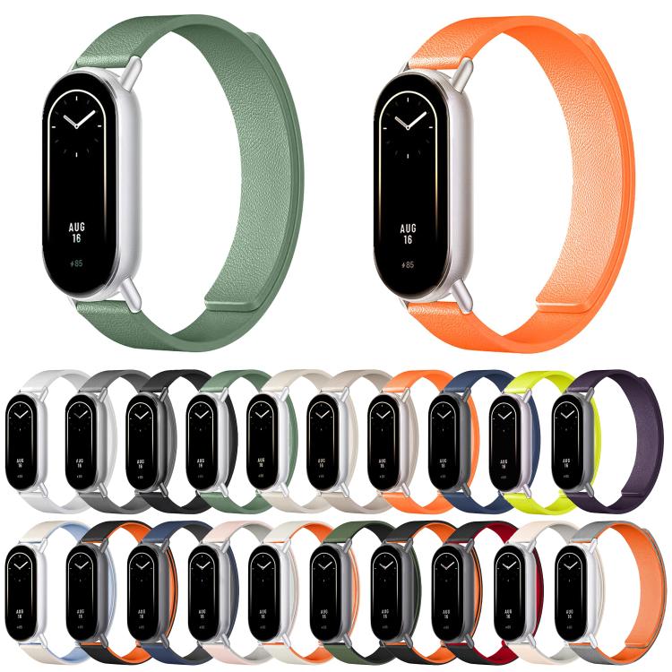 Correa de silicona magnética suave con textura de lichi para Xiaomi Smart Band 10/9/8 (blanco té con leche)