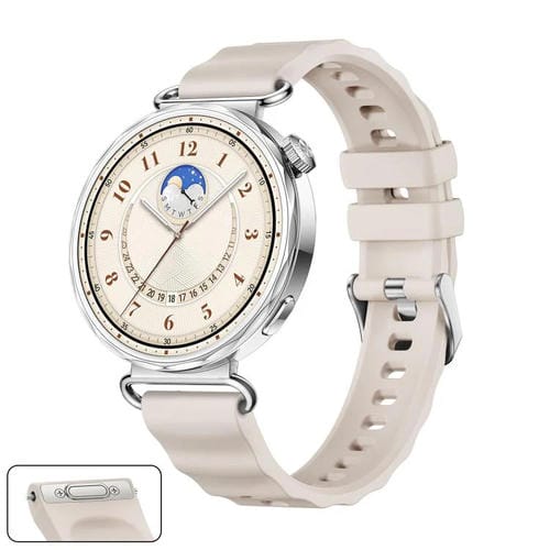Correa de silicona para Huawei Watch GT 6 de 41 mm con botón de presión y liberación rápida, hebilla plateada, color sólido (Starlight)