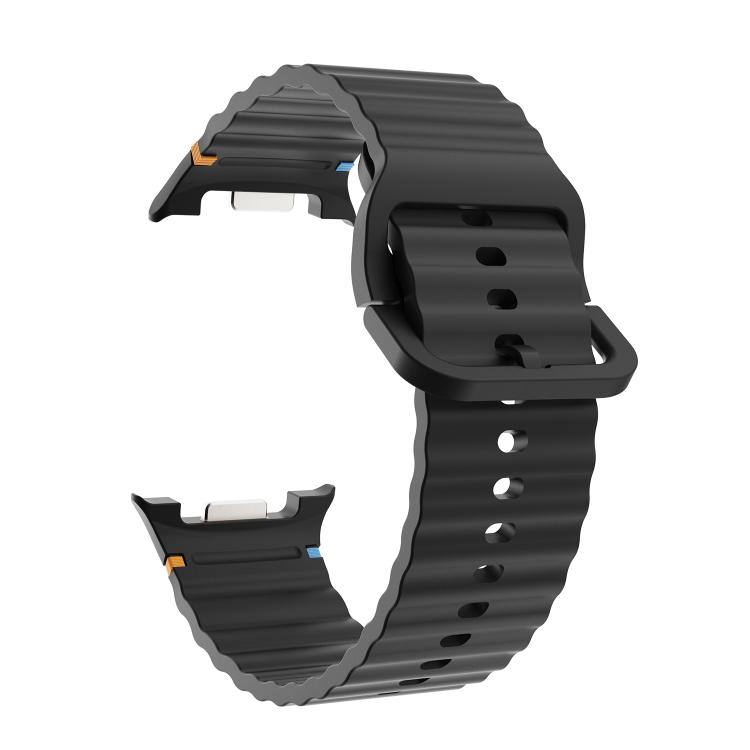 Correa de silicona para Samsung Galaxy Watch8 de 40 mm con bisel de diamante y hebilla de color con costuras onduladas (negro y plateado)