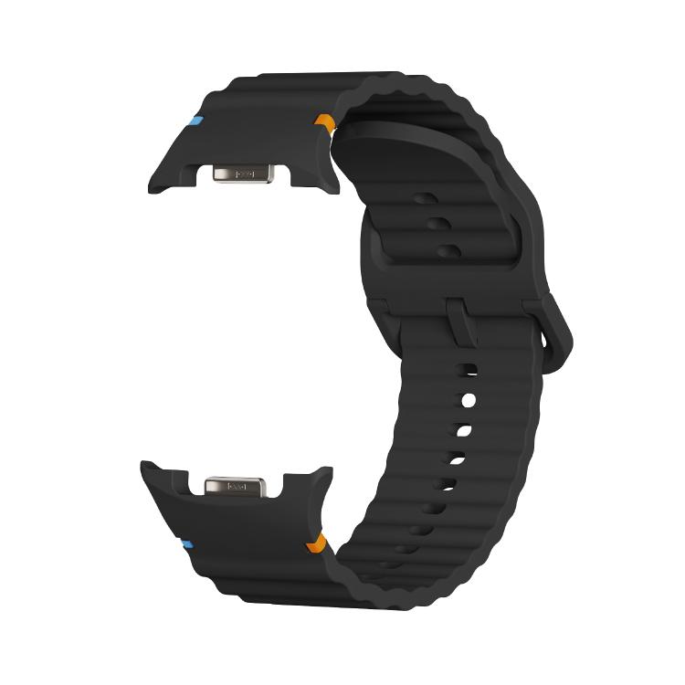 Correa de silicona para Samsung Galaxy Watch8 de 44 mm con bisel con textura rómbica y hebilla de color con costuras onduladas (negro y plateado)