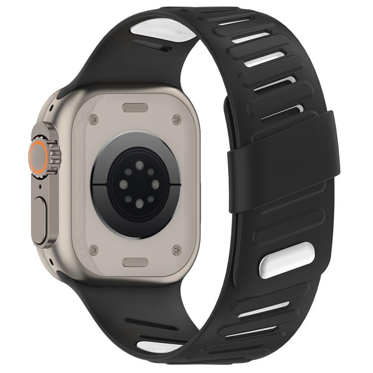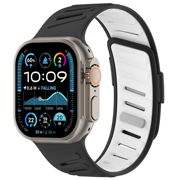 Correa de silicona transpirable bicolor con hebilla oblicua para Apple Watch de 46 mm, 49 mm, 45 mm y 44 mm (negro y blanco)