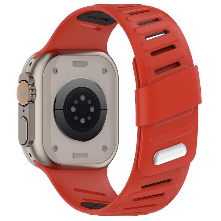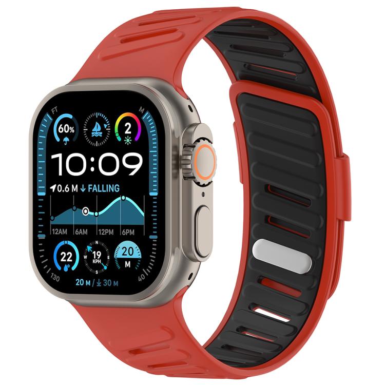 Correa de silicona transpirable bicolor con hebilla oblicua para Apple Watch de 46 mm, 49 mm, 45 mm y 44 mm (rojo y negro)