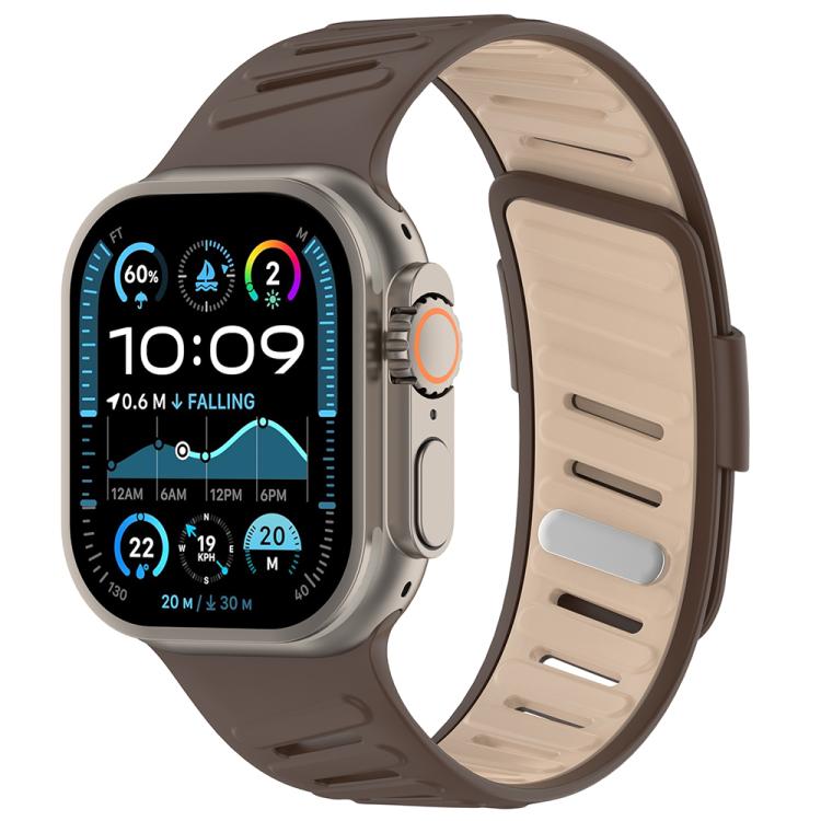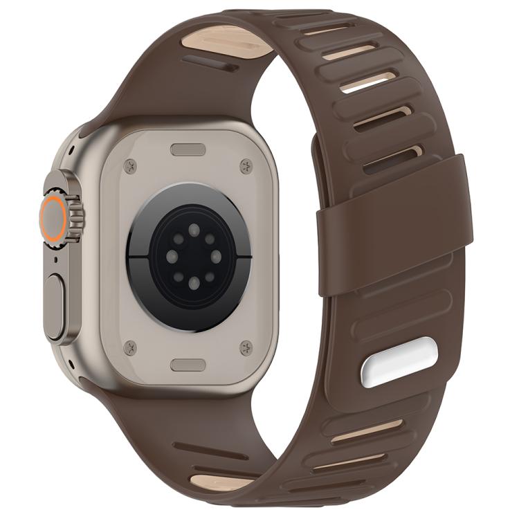 Correa de silicona transpirable bicolor con hebilla oblicua para Apple Watch de 46 mm, 49 mm, 45 mm y 44 mm (té con leche y chocolate)