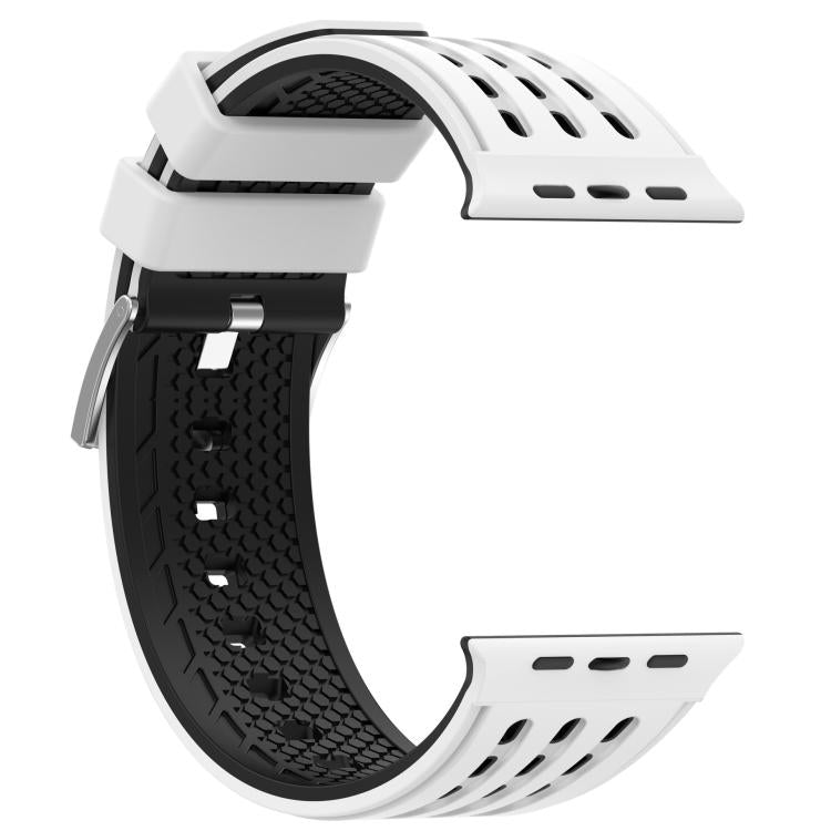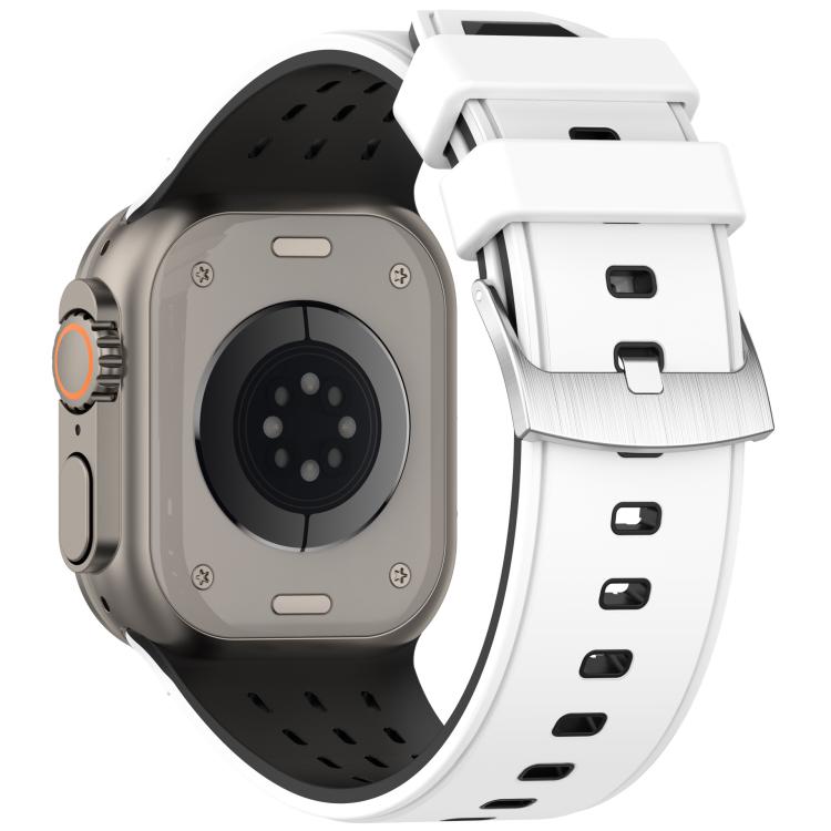 Correa de silicona transpirable de dos colores con agujeros verticales para Apple Watch de 46 mm, 49 mm, 45 mm y 44 mm (blanco y negro)
