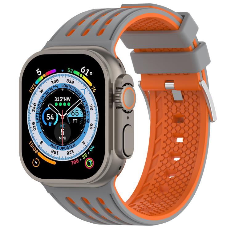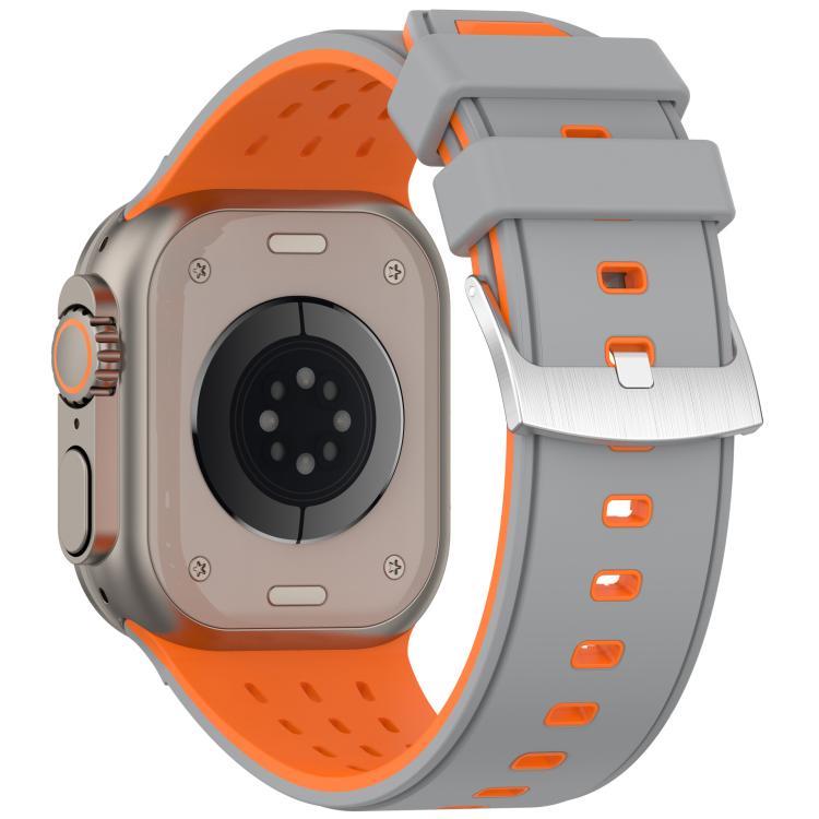 Correa de silicona transpirable de dos colores con agujeros verticales para Apple Watch de 46 mm, 49 mm, 45 mm y 44 mm (gris y naranja)
