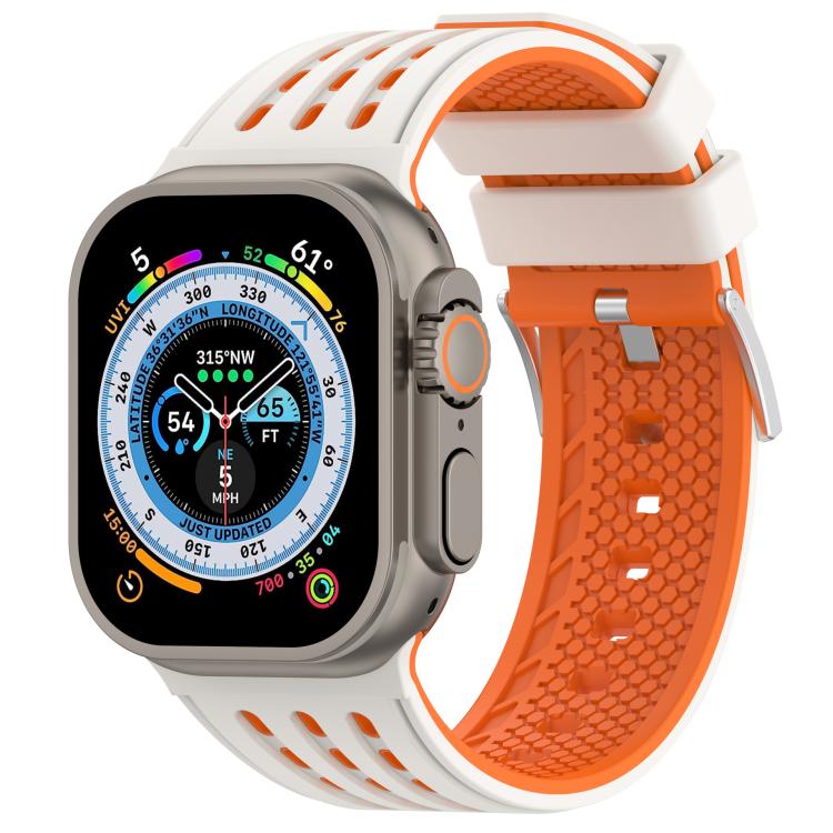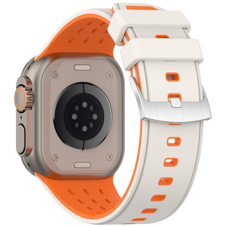 Correa de silicona transpirable de dos colores con agujeros verticales para Apple Watch de 46 mm, 49 mm, 45 mm y 44 mm (naranja estrellado)