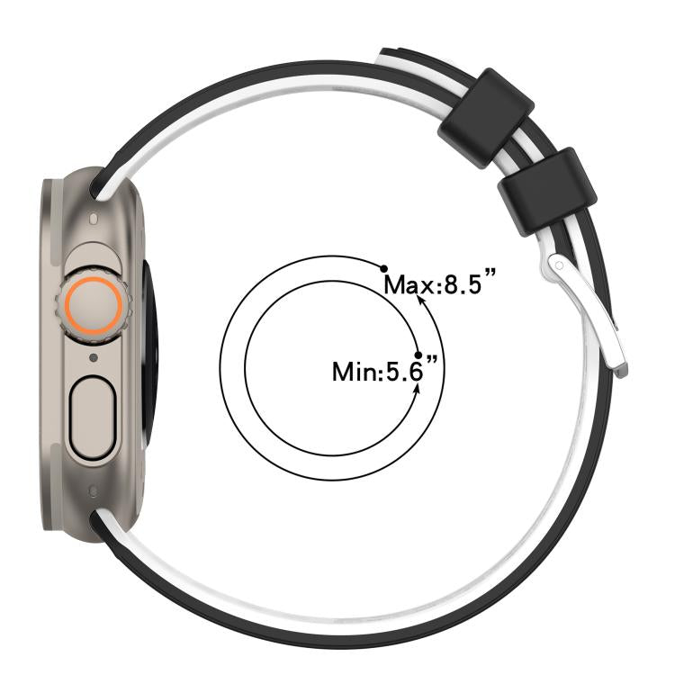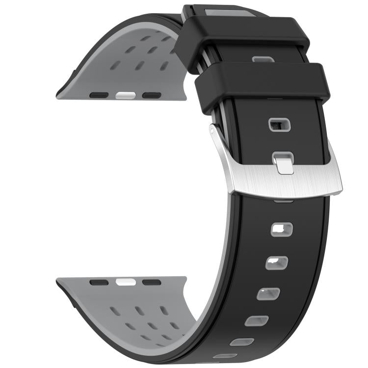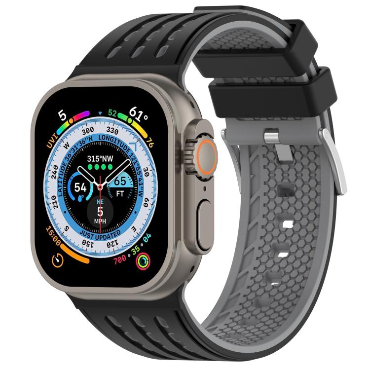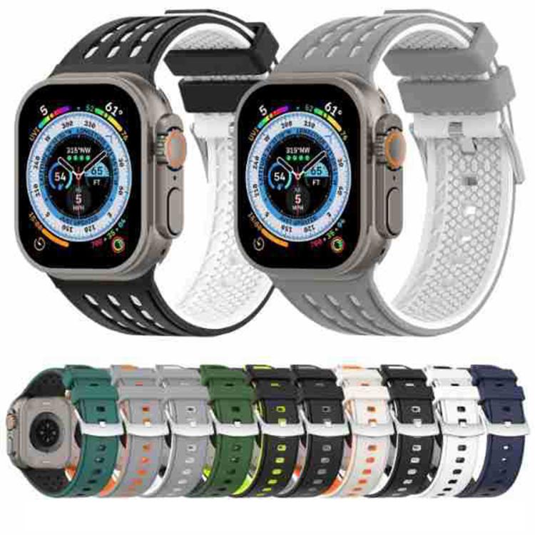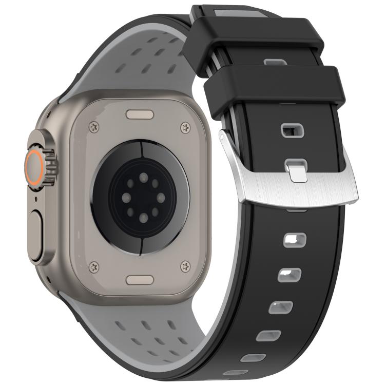 Correa de silicona transpirable de dos colores con agujeros verticales para Apple Watch de 46 mm, 49 mm, 45 mm y 44 mm (negro y gris)