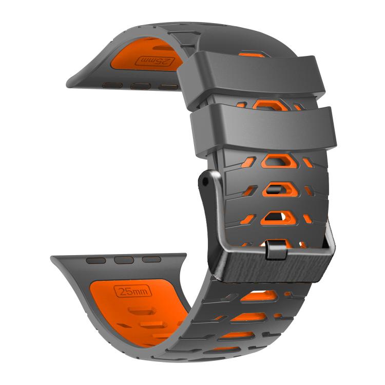 Correa de silicona trapezoidal de dos colores para Apple Watch de 46 mm, 49 mm, 45 mm y 44 mm (gris carbón y naranja)