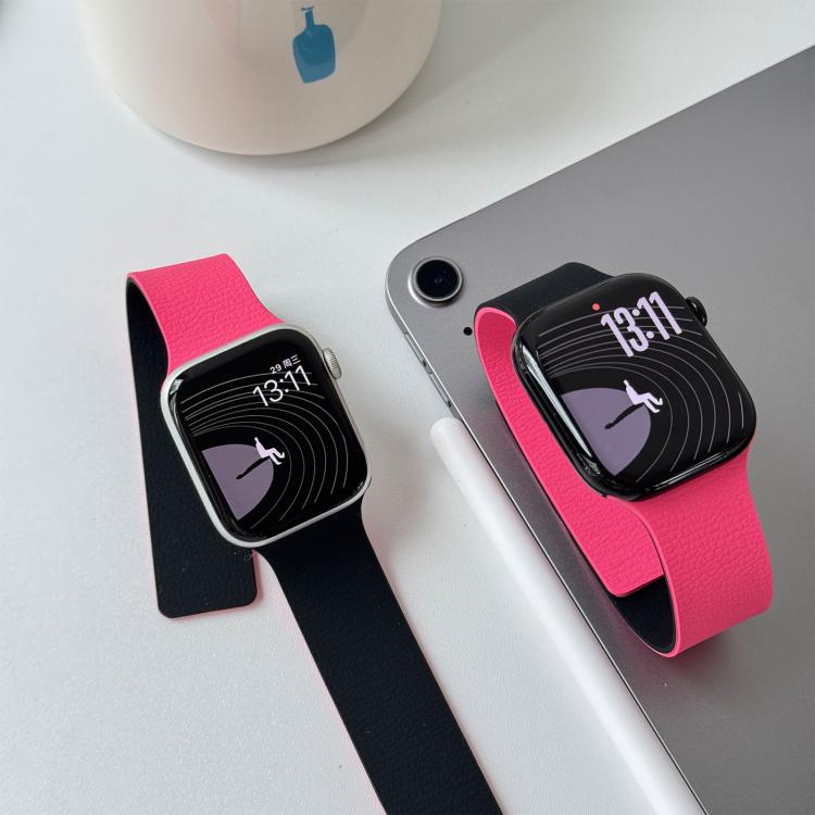 Correa magnética de silicona bicolor con textura de lichi para Apple Watch de 46 mm / 49 mm / 45 mm / 44 mm (Peonía negra)