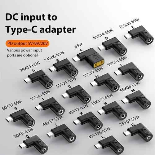 - 1x Entrada de CC 4,8 x 1,7 mm 65 W a Adaptador de Corriente PD USB-C/Tipo-C