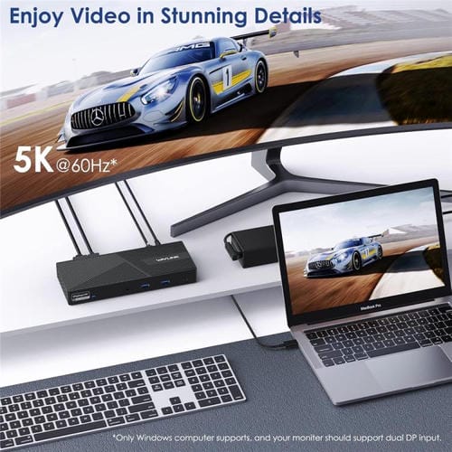 2. Compatibilidad con tres pantallas 4K: Transforma tu espacio de trabajo en un centro de productividad con compatibilidad para hasta 3 pantallas 4K a 60 Hz (Windows) o pantallas extendidas para usuarios de MacBook Pro y MacBook Air.