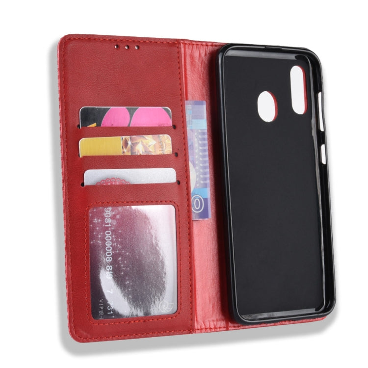 Estuche de Cuero Galaxy A20 A30 Tapa Horizontal Textura Caballo Loco Soporte Ranuras Tarjetas Marco Fotos (Rojo)