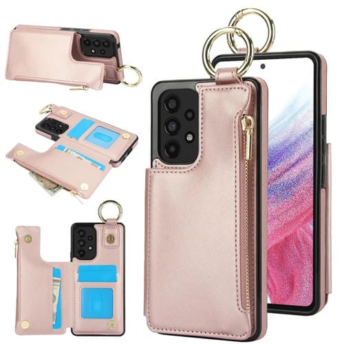 Estuche para Teléfono Samsung Galaxy A73 4G/5G Rfld con Cremallera y Anillo de Doble Hebilla Antirrobo (Oro Rosa)