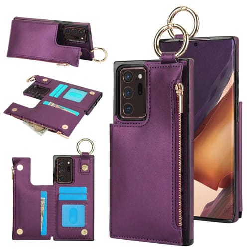 Estuche para Teléfono Samsung Galaxy Note20 Ultra Rfld Cremallera y Anillo Doble Hebilla Antirrobo (Morado Oscuro)