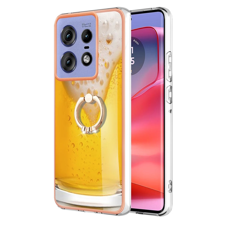 Estuche para Teléfono Motorola Edge 50 Pro con Galvanoplastia IMD Doble Cara y Soporte para Anillo (Cerveza de Barril)