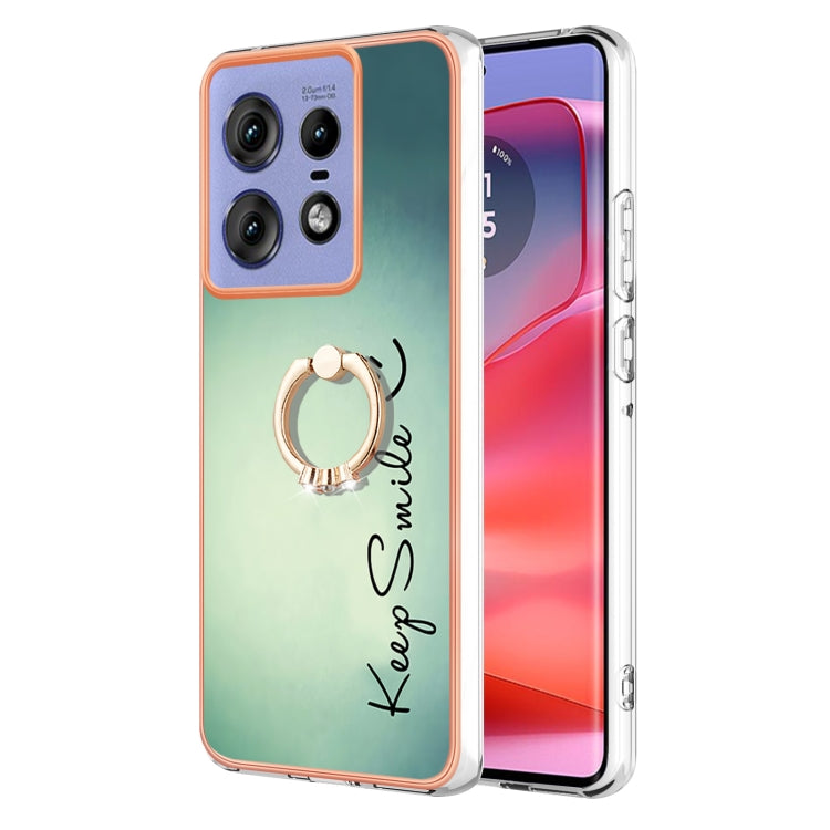 Estuche para Teléfono Motorola Edge 50 Pro con Galvanoplastia IMD Doble Cara y Soporte para Anillo (Sonrisa)
