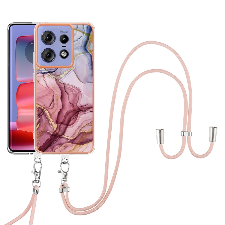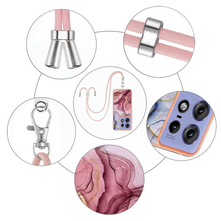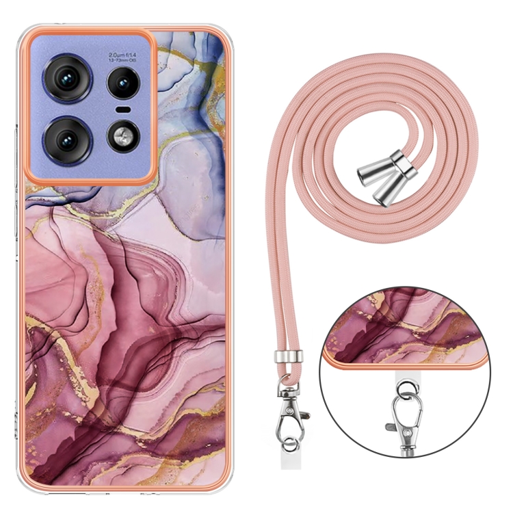 Estuche para Teléfono Motorola Edge 50 Pro con Imd Doble Cara y Galvanoplastia de Mármol con Cordón (Rojo Rosa)