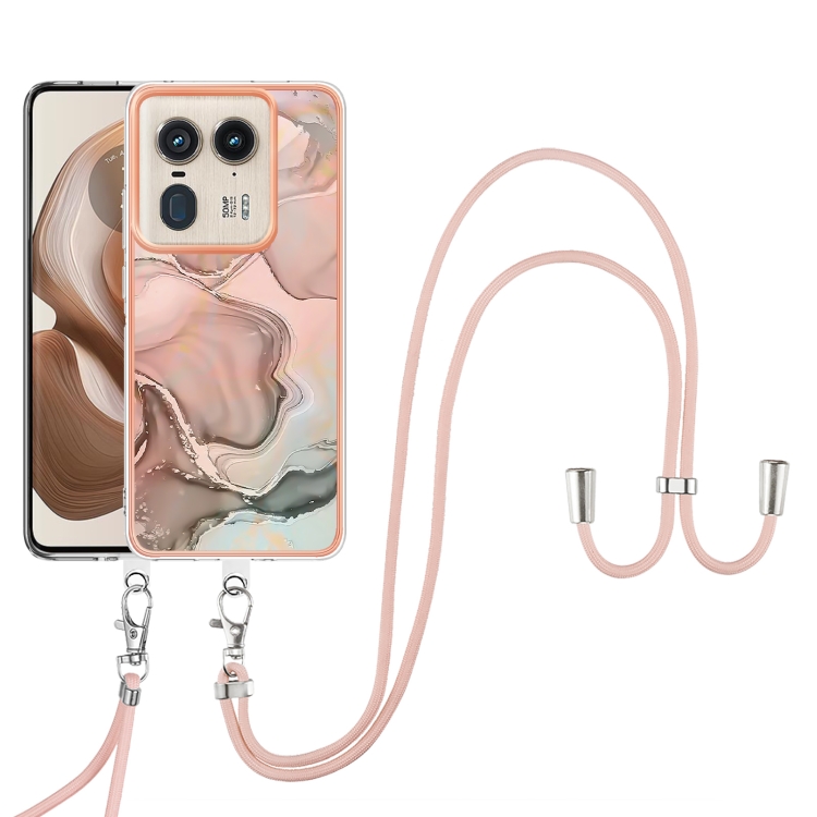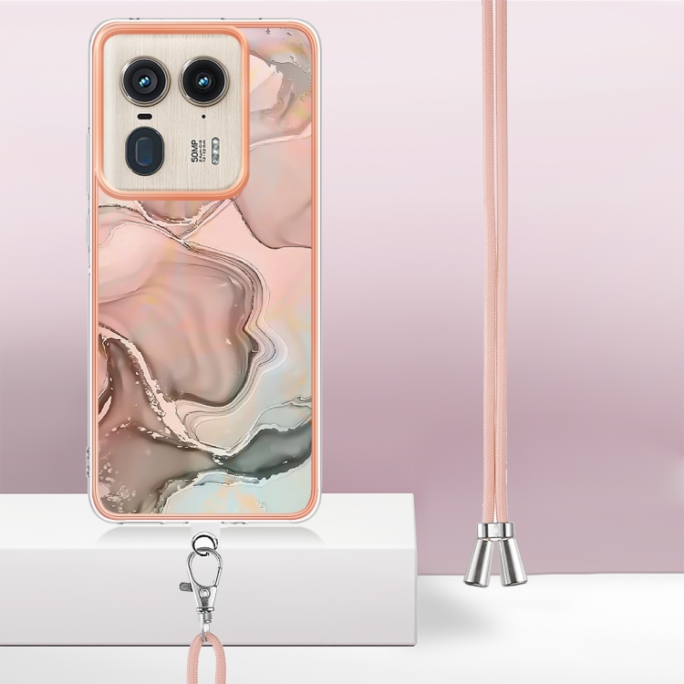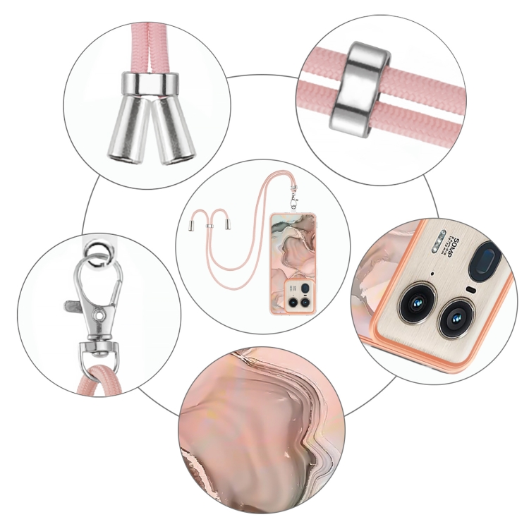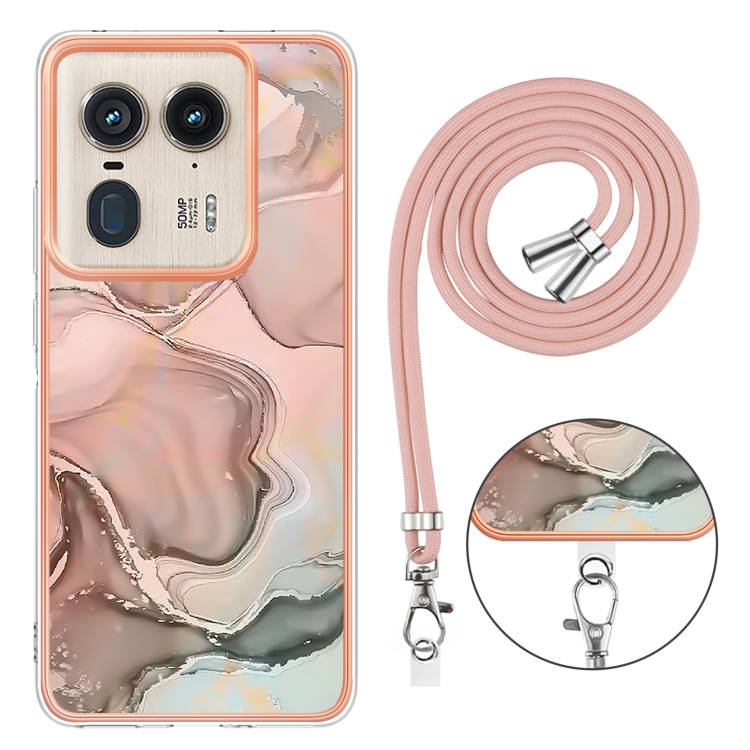 Estuche para Motorola Edge 50 Ultra con Imd Doble Cara y Galvanoplastia Mármol con Cordón (Oro Rosa)