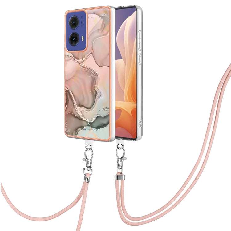 Estuche para Teléfono Motorola Moto G85 con IMD Doble Cara y Galvanoplastia Mármol con Cordón (Oro Rosa)