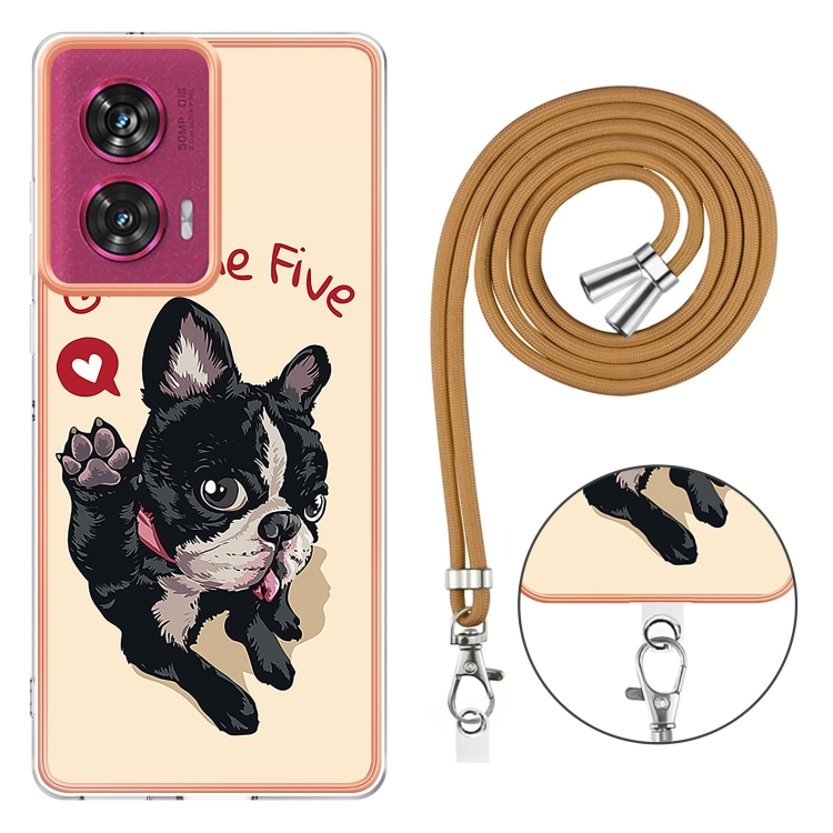 Estuche para Motorola Edge 50 Fusion con IMD Doble Cara, Galvanoplastia y Cordón (Perro de la Suerte)