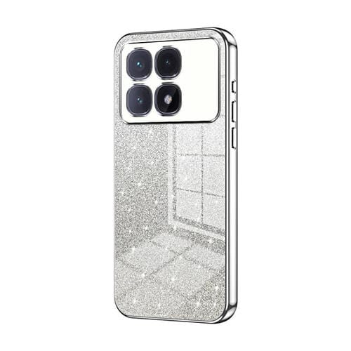 Estuche para Teléfono con Purpurina En Polvo Ultra Degradado Galvanizado para Xiaomi Redmi K70 (Plateado)