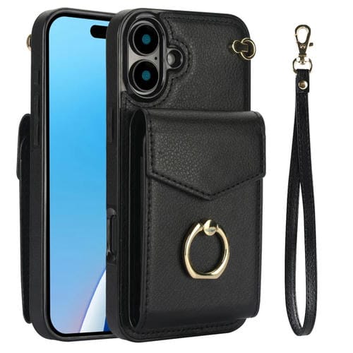 Estuche para Teléfono iPhone 16 Plus Ranura Tarjeta Rfid Soporte Anillo (Negro)