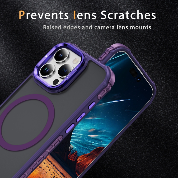 Estuche para teléfono iPhone 16 Pro con soporte para Lentes Magsafe tacto de piel (Morado Oscuro)