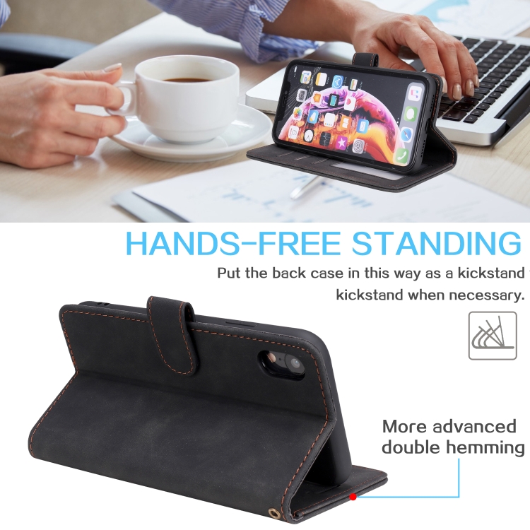 Funda Telefónica Piel Antirrobo Cepillo iPhone Xr con Flip Horizontal (Negro)
