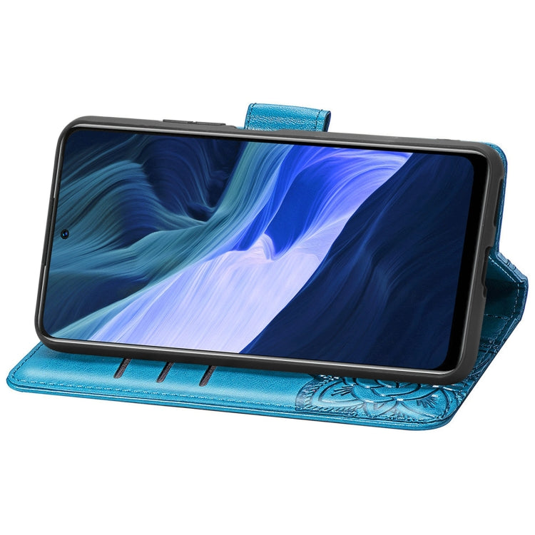 Funda de Cuero Flores de Amor Mariposa para Infinix Nota 10 con Soporte y Ranuras (Azul)